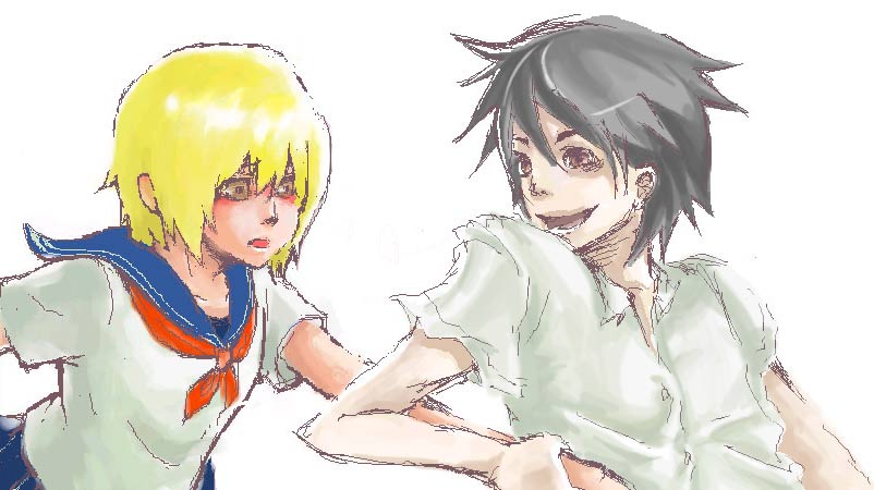 学生服で(しかも美鶴は女の子制服で)手つなぎ!
